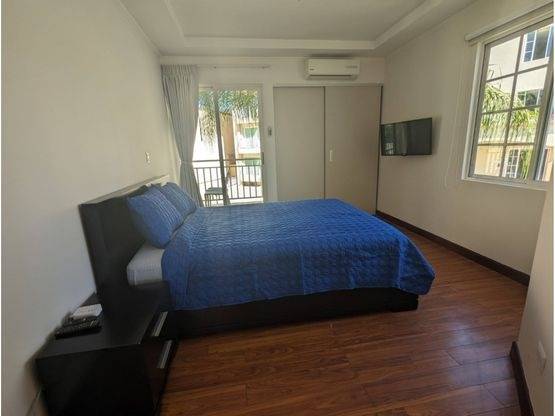 DESCRIPCIÓN DETALLADA: amplia casa de dos pisos en condominio céntrico, seguro, exclusivo y con seguridad 24/7, acceso automático mediante sticker para mayor seguridad. Dispone de una toma de corriente para cargar vehículos eléctricos. Cuota de mantenimiento e internet incluido. No incluye otros servicios públicos.