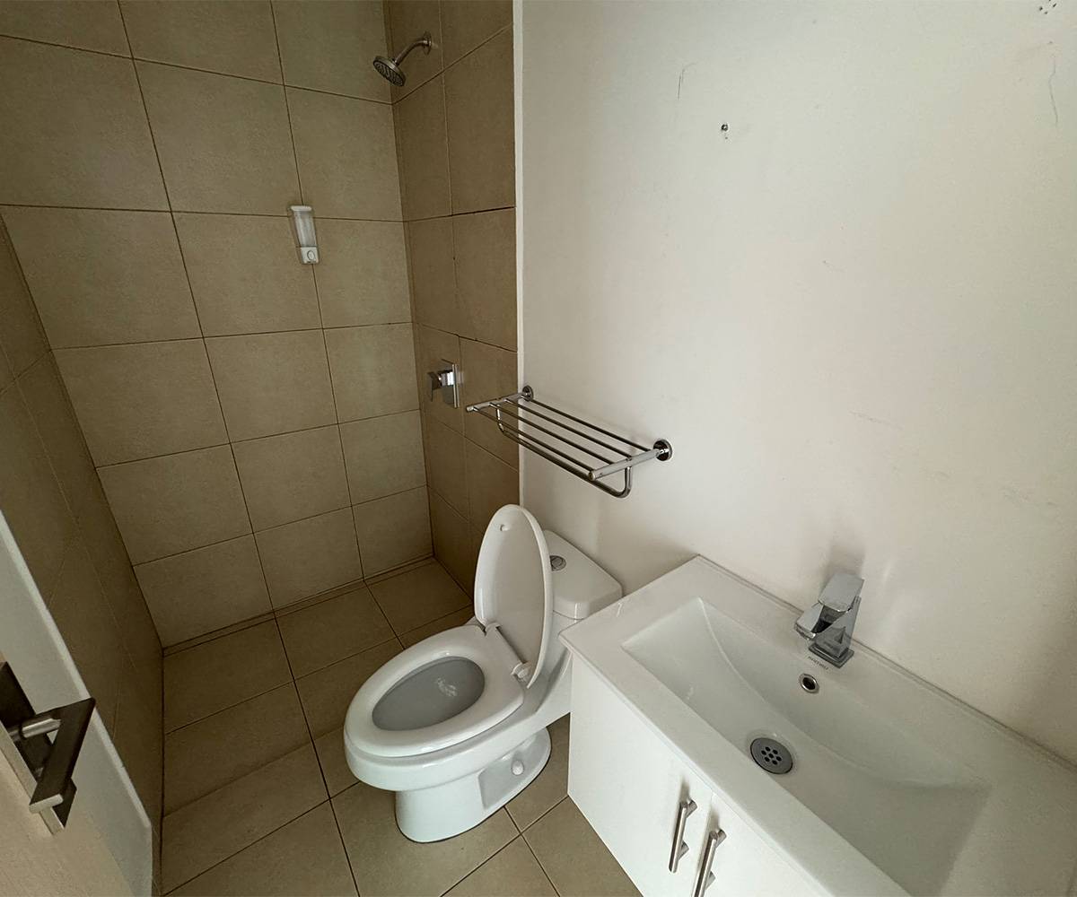 - Baño completo de uso compartido (visitas y habitación secundaria), con finos acabados y enchapes en la ducha de piso a techo.