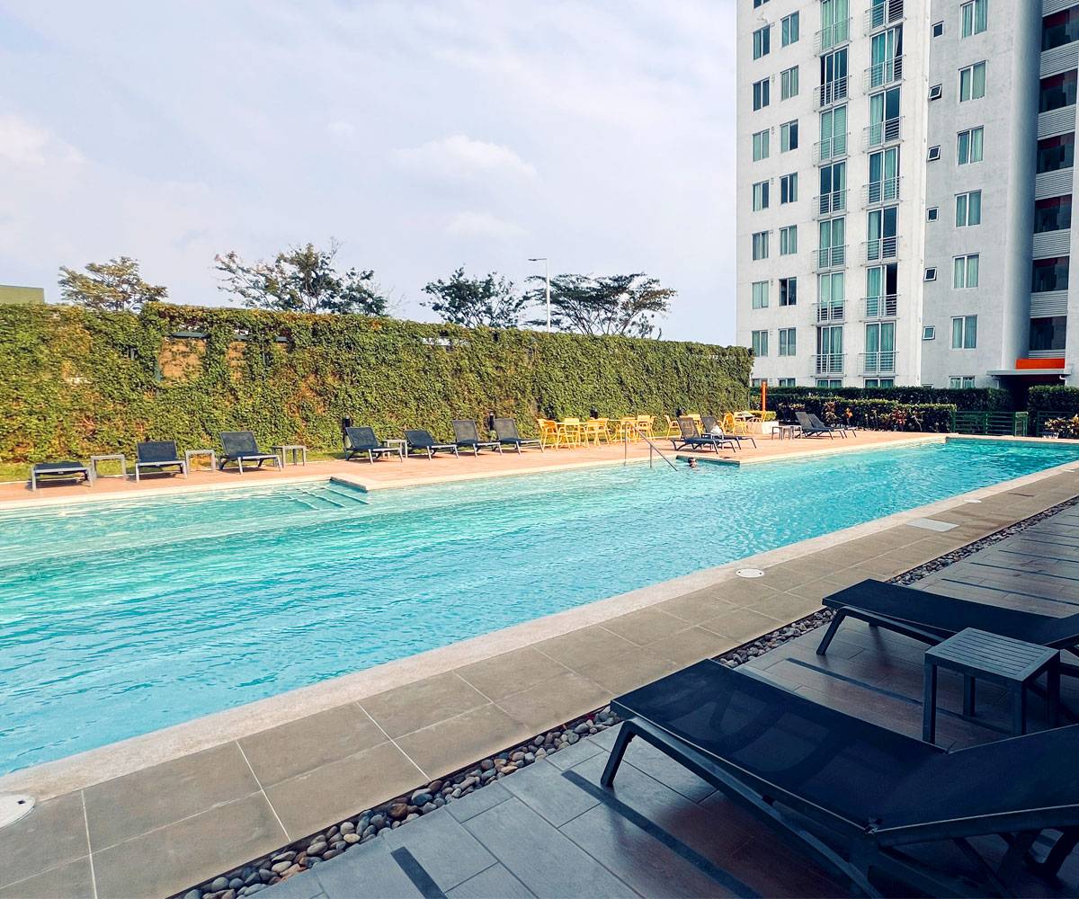 Located on the fifth floor, near several free trade zones and with quick access to Heredia, Alajuela, and San José. It is in excellent condition, with abundant natural light and panoramic mountain views.Living area: 55 m² | Total area: 81 m² Parking area: 26 m² (tandem covered parking)