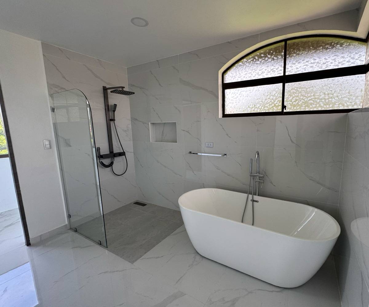 1 máster suite con walk-in clóset y baño privado completo el cual tiene ducha y tina separadas.