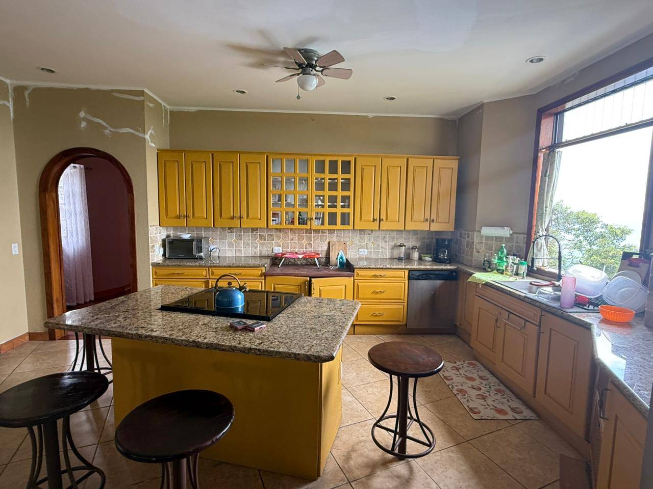 En el nivel inferior se encuentran dos amplias habitaciones conectadas por un baño compartido estilo Jack-and-Jill, cada una con balcón privado con vistas directas a la piscina y al océano. La planta principal incluye una cocina de concepto abierto y comedor integrados a una gran terraza exterior, ideal para recibir invitados o disfrutar del atardecer, además de una sala espaciosa con chimenea y un medio baño. El garaje completo, actualmente utilizado como taller, ofrece la posibilidad de convertirse en una habitación adicional o cuarto de servicio.