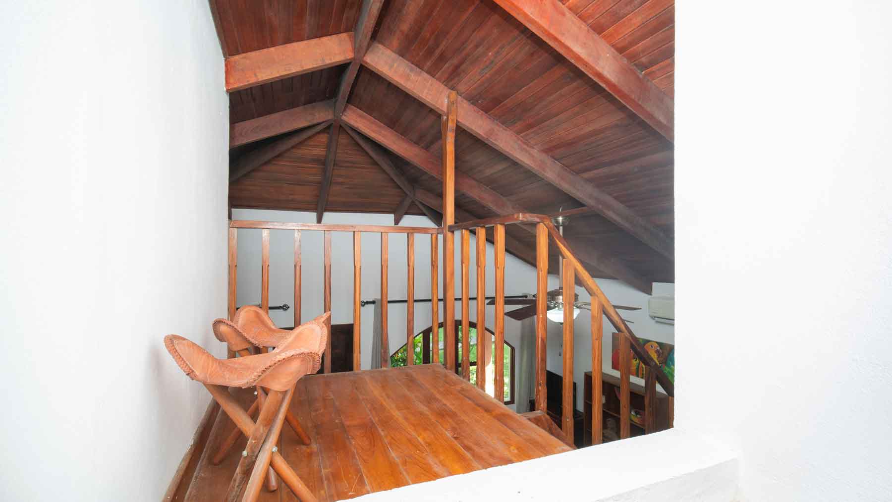 Un detalle único de esta villa es su acogedor altillo sobre la sala de estar: un espacio perfecto y privado para crear un rincón de lectura, un lugar de meditación o simplemente un rincón tranquilo para relajarse.