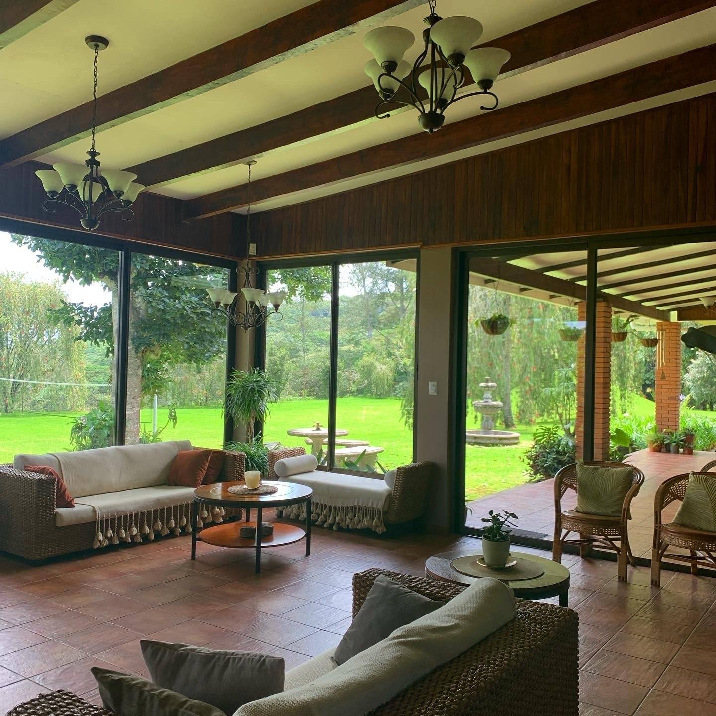 - Casa principal: 9 habitaciones y 9 baños, ideal para hospedar grupos grandes o familias.