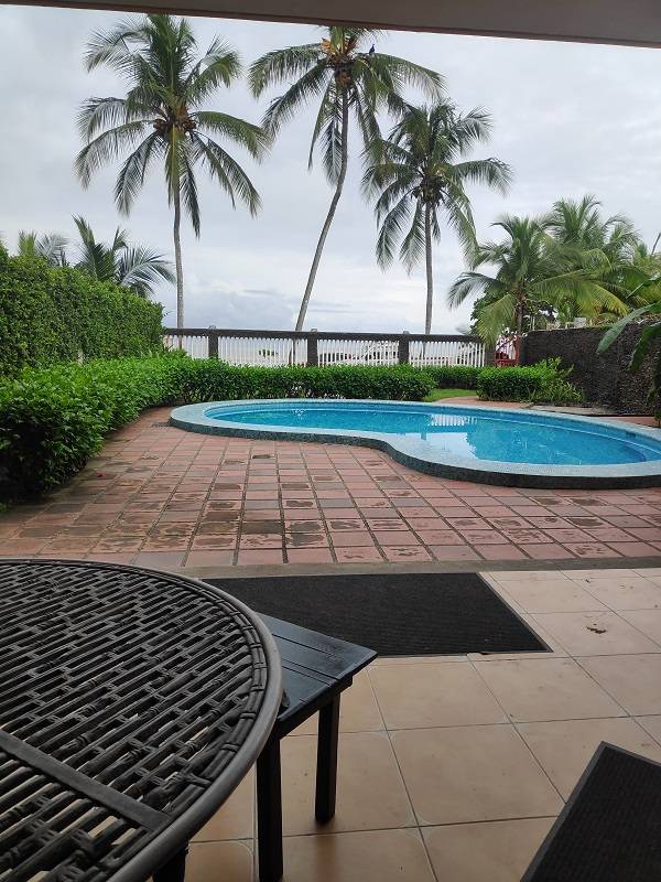 - Exterior con piscina privada, bar tiki, parrilla, duchas al aire libre y vista directa al océano.