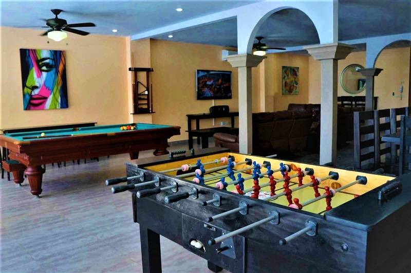 Cuenta con sala de estar amplia, cocina de concepto abierto ideal para chef privado, TV de gran formato y mesa de billar convertible en comedor.