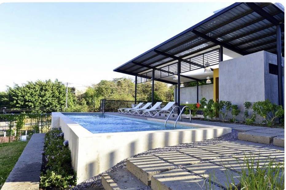 El condominio cuenta con areas verdes, una piscina preciosa, y una cómoda área social.
