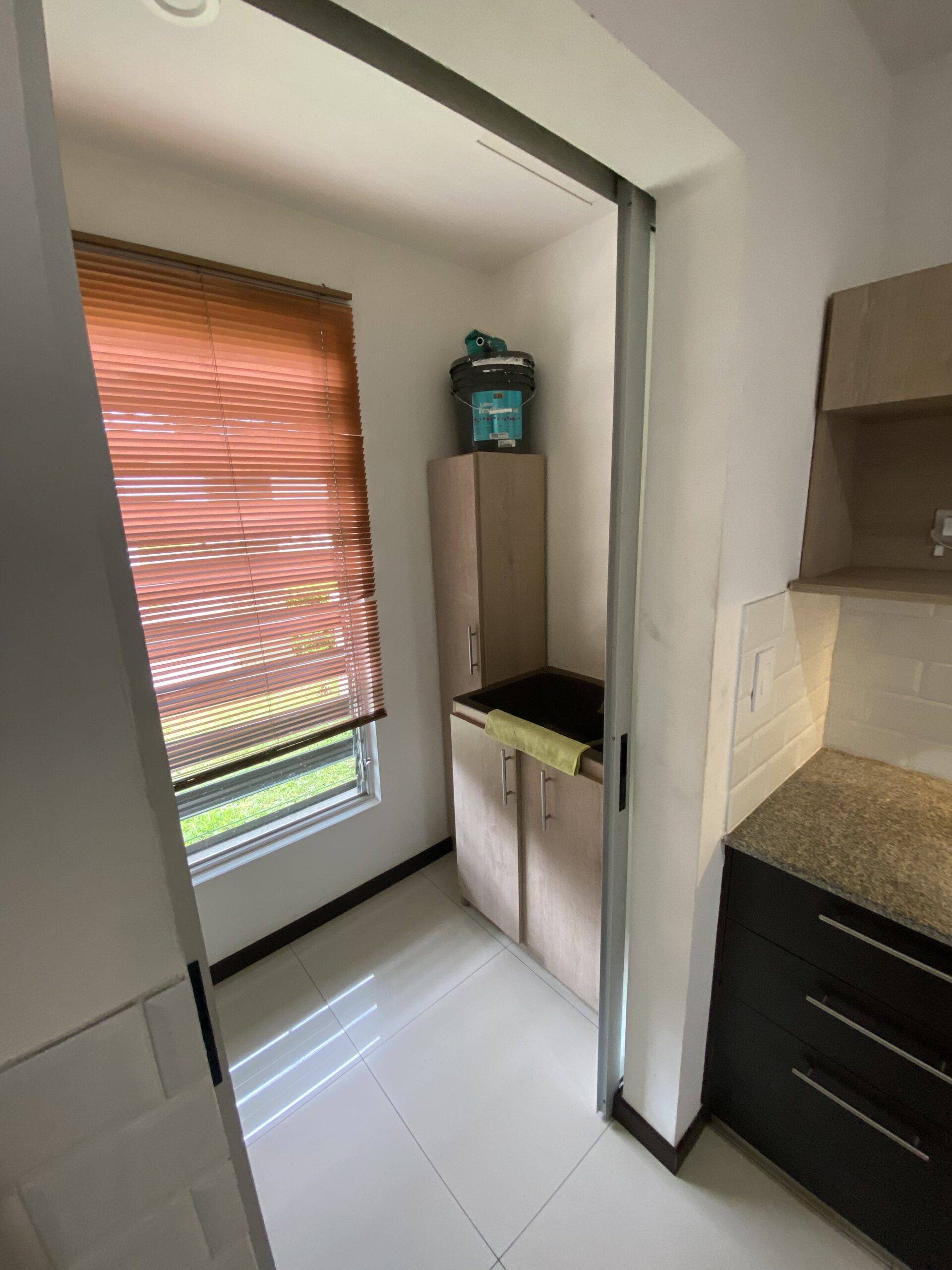En cuanto a sus características, dispone de dos habitaciones con clóset, siendo la principal con baño privado. Tiene dos baños completos con muebles, aire acondicionado en el cuarto principal, cocina con sobres de granito y muebles, amplia sala y comedor, terraza y jardín con zacate sintético, agua caliente en toda la casa gracias a un calentador de paso, área de lavado interna, parqueo techado para dos vehículos y pisos en porcelanato.