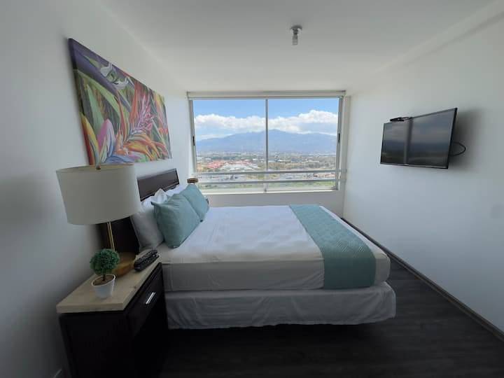 DESCRIPCIÓN DETALLADA: exclusivo apartamento con finos acabados, ubicado en la torre 2, piso 11 con vista al valle central. Bellavista es un condominio 100% construido de 2 torres con 238 apartamentos en total, más 1 torre de 368 parqueos y 29 bodegas. Ubicado estratégicamente en Barreal de Heredia, con vistas hacia las montañas de Heredia y el Valle Central, el cual fue diseñado con más de 18.883 m2 en amenidades especiales para los gustos más exigentes. Cerca de las zonas francas más importantes de Heredia, a 20 minutos del aeropuerto internacional Juan Santamaría, a 5 minutos de centros comerciales como Oxigeno y Mall Paseo de Las Flores. Cuota condominal ₡63.755. Precio de promoción hasta el 31 de diciembre: incluye gastos legales, un año de cuota de mantenimiento y devolución de la reserva al finalizar del cierre (reserva con $500).
